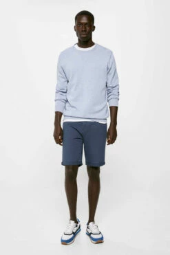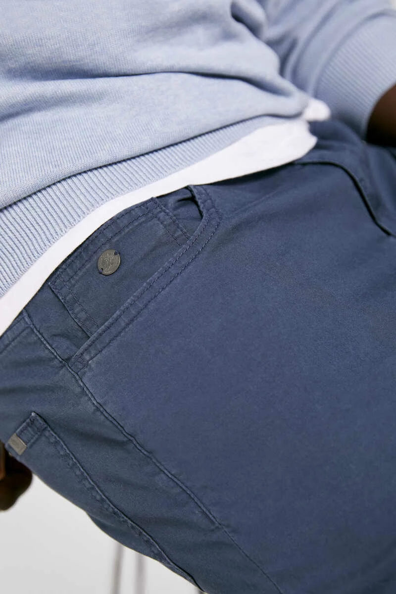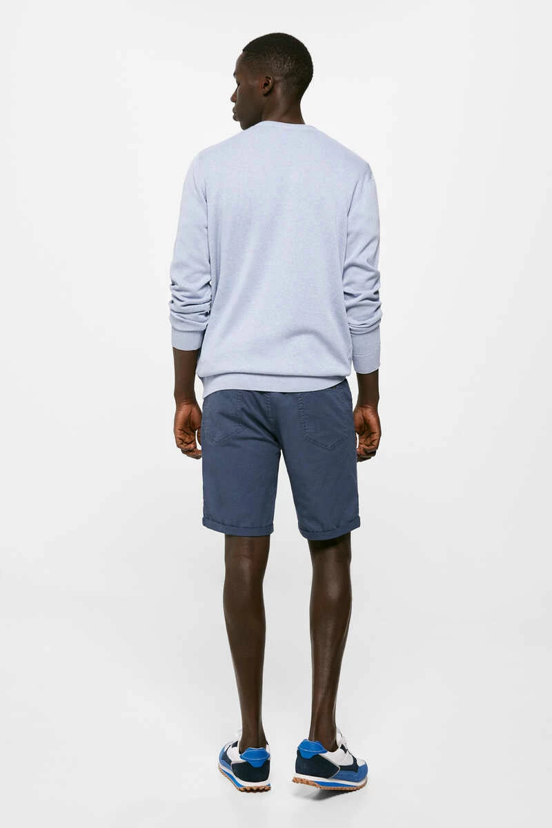 Bermuda 5 bolsillos color elástica en fit slim con vueltas en los bajos. Confeccionada con una calidad de sarga ligera. Detalle de placa metálica en bolsillo cerillero. Tintura en prenda y lavado uniforme. Lavado ECO-WASH realizado con nanoburbujas, lavadoras eficientes y químicos ecológicos. Con estas tecnologías sostenibles reducimos el consumo de agua, químicos y energía. Cierre bragueta con cremallera. Proyecto RECONSIDER.