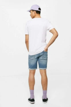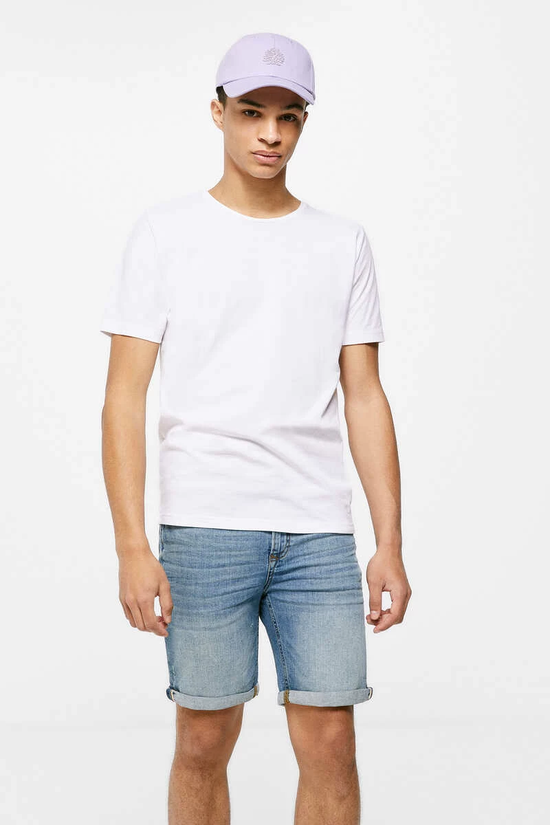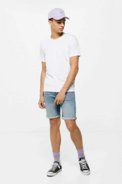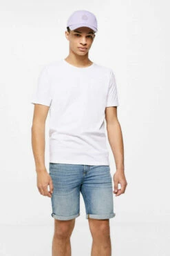 Bermuda vaquera 5 bolsillos elástica en fit slim. Diseño con vueltas en los bajos y detalles de falso orillo. Lavado medio-oscuro ligeramente ensuciado de aspecto usado con arrugas en el frontal y detalles de rozados. Lavado ECO-WASH realizado con técnicas sostenibles de pulverización, láser y lavadoras eficientes. Con estas tecnologías sostenibles reducimos el consumo de agua, químicos y energía. Cierre bragueta con cremallera. Proyecto RECONSIDER.
