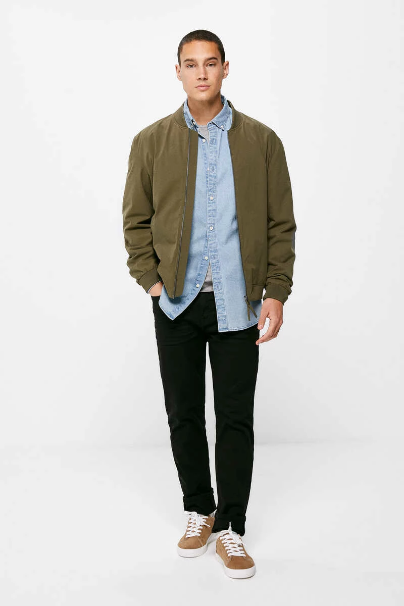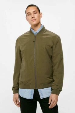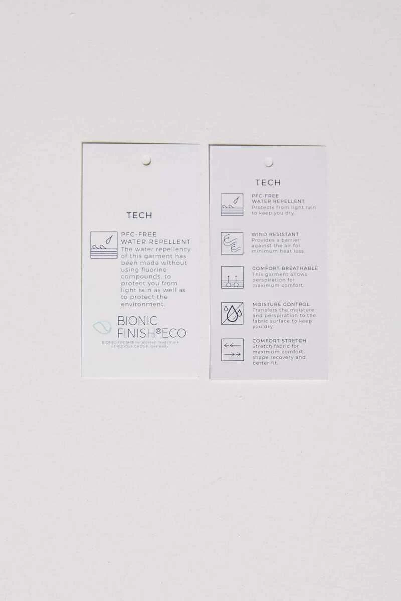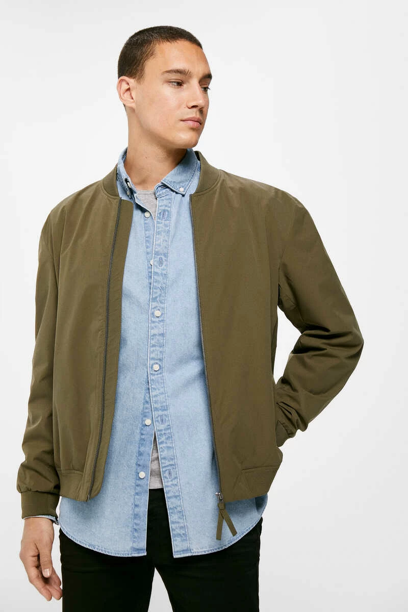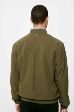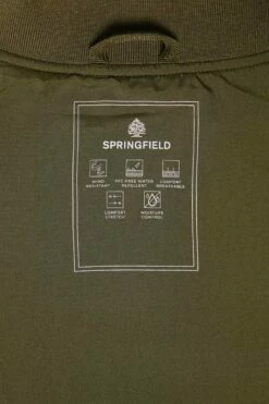Chaqueta bomber técnica en tejido de poliéster repelente al agua libre de PFCs, resistente al viento, transpirable y ‘comfort stretch’. Forrada con tejido transpirable con efecto ‘moisture control’. Con cierre de cremallera, bolsillos con botones automáticos, cuello, bajo y puños en punto elástico, bolsillo interior, y detalle de etiqueta decorativa.