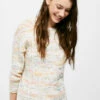 Camiseta de manga larga caída, con cuello redondo, con detalle de botones metálicos en los laterales y con combinación de tejido en el bajo, de punto cortado con tacto suave.