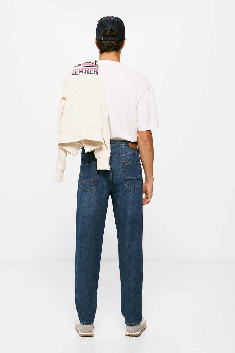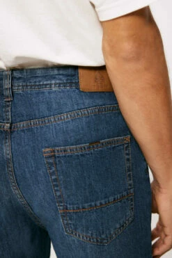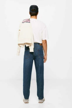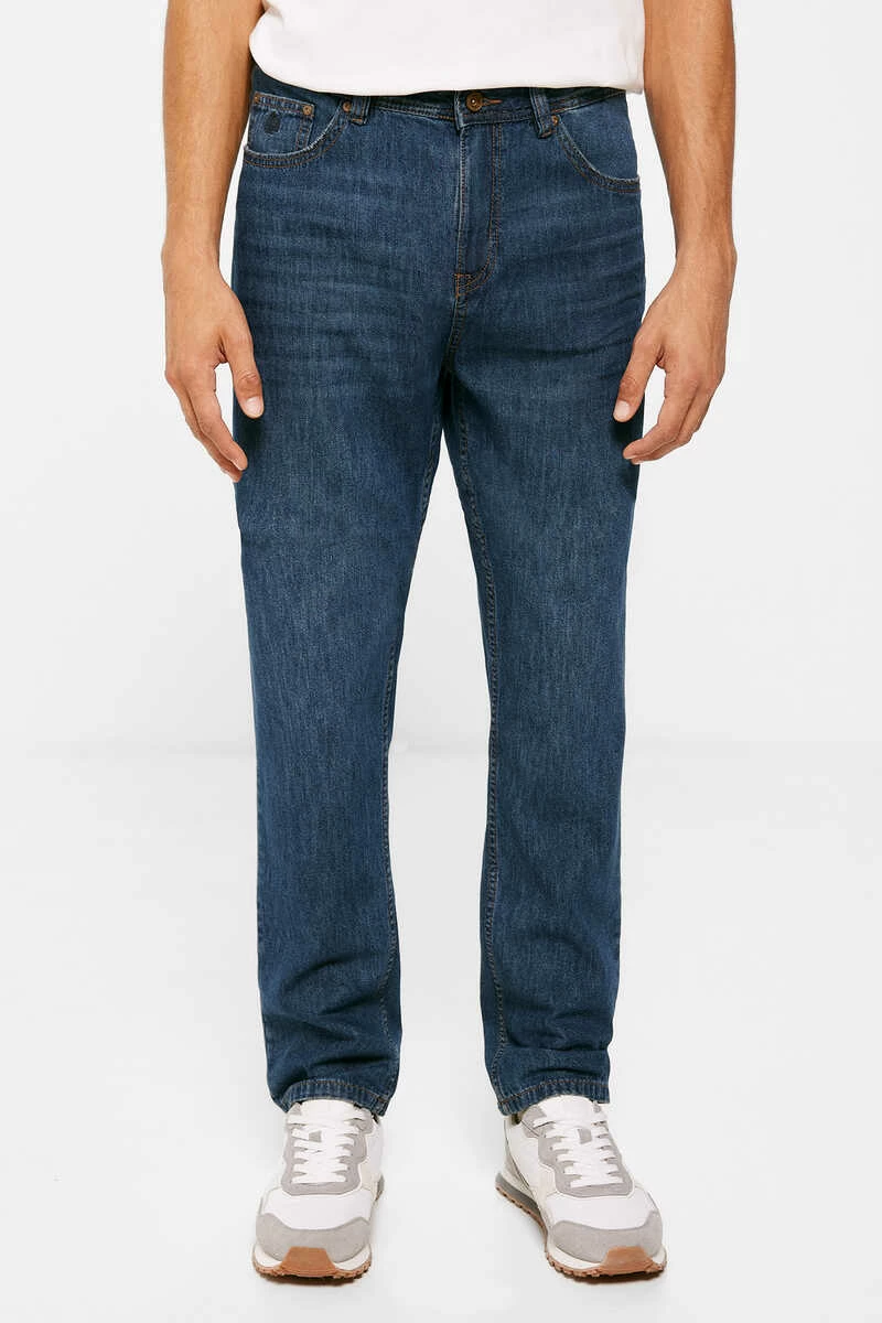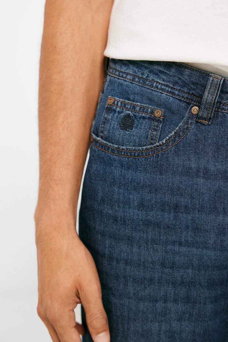 Jeans 5 bolsillos en fit regular, confeccionado en una calidad ligera de denim. Detalle de logo bordado en bolsillo cerillero. Lavado medio-oscuro de aspecto usado. Lavado ECO-WASH realizado con técnicas sostenibles de láser, ozono y lavadoras eficientes. Con estas tecnologías sostenibles reducimos el consumo de agua, químicos y energía. Cierre bragueta con cremallera. Proyecto RECONSIDER.