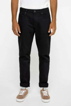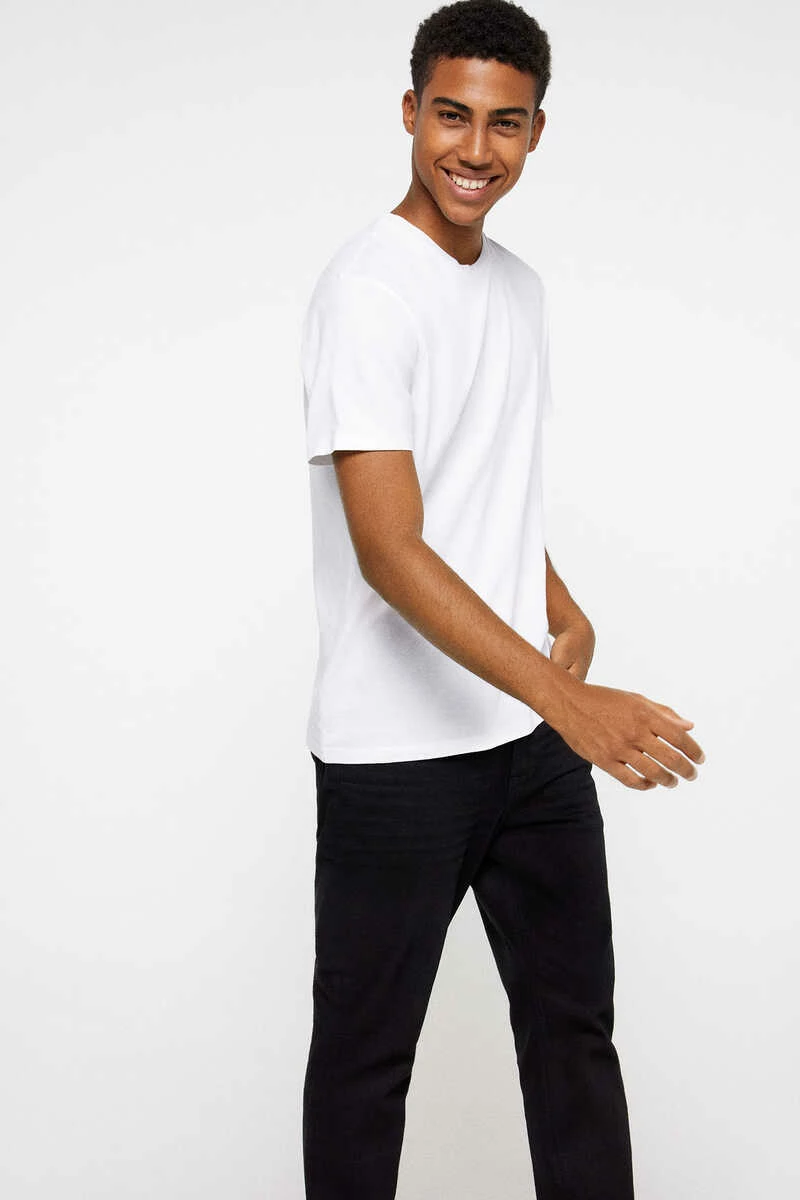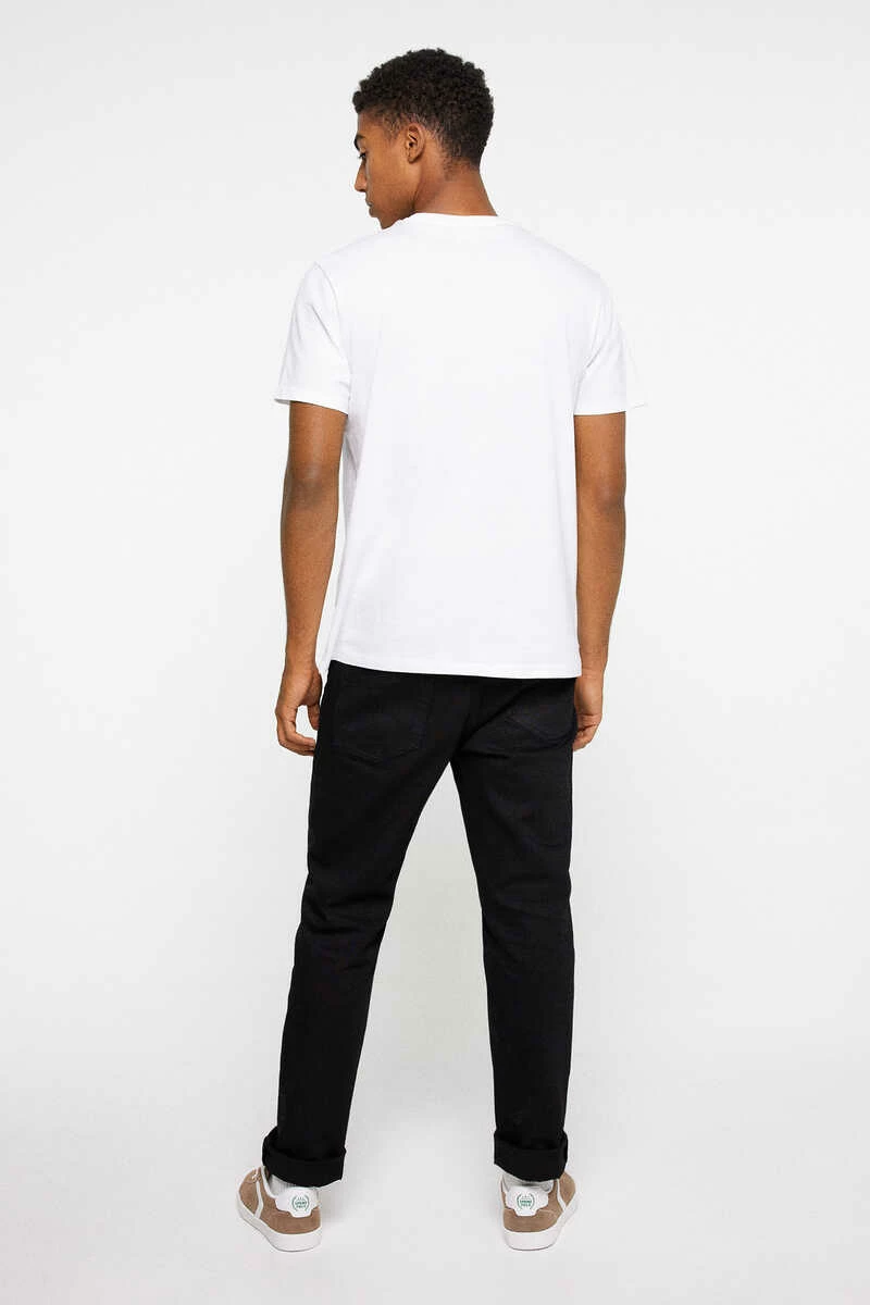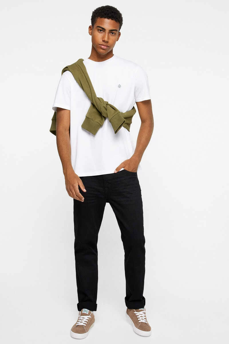 Jeans 5 bolsillos negro confort elástico en fit regular. Lavado suave de aspecto usado, tipo vintage. Lavado ECO-WASH realizado con técnicas sostenibles de láser, lavadoras eficientes y químicos ecológicos. Con estas tecnologías sostenibles reducimos el consumo de agua, químicos y energía. Cierre bragueta con cremallera. Proyecto RECONSIDER.